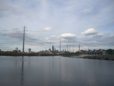 So we walked back to the Halsted Orange Line Station, and rode it one stop in a southwest direction to Ashland. From there, we walked a short distance north to the park, which is in the photo directly below. It has great views of the Chicago skyline from the spot where the South Branch of the Chicago River flows into the Sanitary and Ship Canal, which replaced the Illinois and Michigan Canal. The people who settled Chicago tapped into the potential of the waterways, which yielded the thriving city whose skyscrapers stand prominently in view from Canal Origins Park.